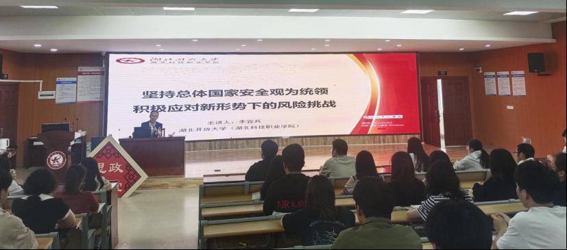 “新形势下国家安全面临着哪些压力和风险”“当代青年应该如何扛起维护国家安全的使命担当”。讲课过程中李宜兵深入浅出、旁征博引,和同学们共同探讨这些事关国家安全的关键问题,回应了青年学生的情感关切,实现了理论深度与现实温度的有机结合。最后,李宜兵强调:在当前局势下,青年学生必须强化守土有责的使命感,无论未来在什么工作岗位,都始终把祖国安危扛在肩头,把人民安康刻在心上。