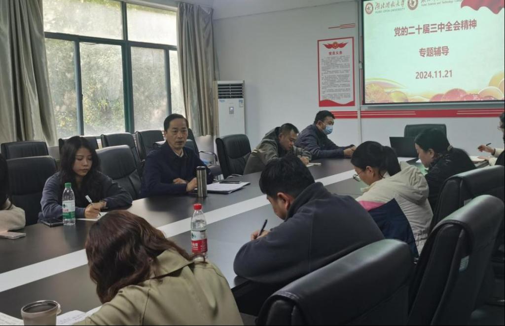 本网讯(通讯员 陈泉 文/图)为深入学习贯彻党的二十届三中全会精神,根据学校《关于开展科级及以下干部、党员学习贯彻党的二十届三中全会精神培训的通知》要求,结合院部实际,11月21日下午,马克思主义学院、公共课教学部召开专题辅导会议,深入学习党的二十届三中全会精神,并围绕改革的重大意义、总体要求及重点任务展开探讨。院部全体党员参加会议。