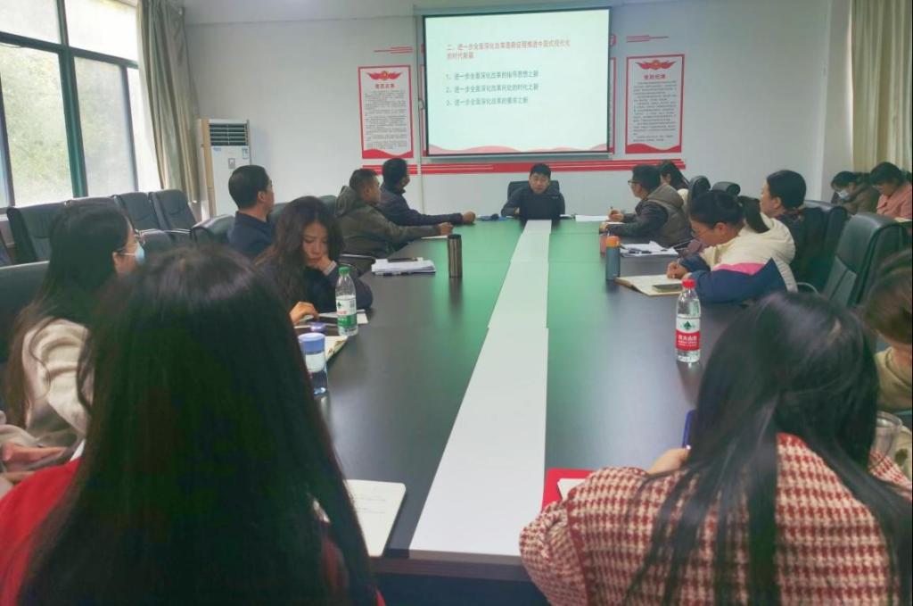 会上,黄雷老师以《学习领会党的二十届三中全会精神——以进一步全面深化改革开辟中国式现代化》为题作专题辅导报告。他将国家发展和学校现状相结合,从进一步全面深化改革的重大意义和总体要求、重点聚焦在更高水平上进一步全面深化改革和提高党对进一步全面深化改革的领导水平这三个方面对全会精神进行了详细解读,使全体党员教师对全会的丰富内涵和精神实质有了更加全面深入的理解和领悟。