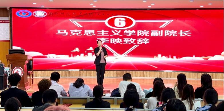 本网讯(通讯员 干元/文 罗凯/图)为进一步加强学会组织建设,做好新老干部人员交替和工作的有序过渡,根据《青年马克思主义知行学会章程》及“青年马克思主义知行学会2023年工作计划”,10月19日,青年马克思主义知行学会(以下简称“知行学会”)召开“薪火相传,青春接力” 2023-2024年度换届大会,大会宣布产生第七届知行学会干部共18名,马克思主义学院副院长李映、全体思政教师、以及知行学会近百名成员参加活动。