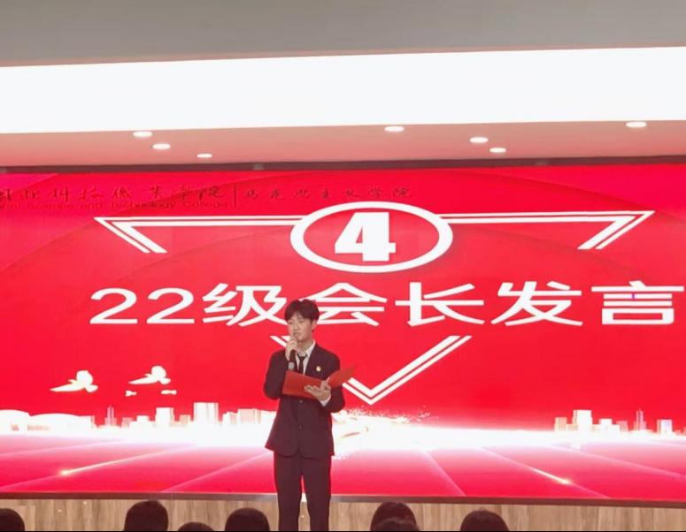 随后,新任会长刘文涛同学发言表示,他将以上一届学会干部为学习榜样,以积极的工作态度和永争第一的干劲做好学会各项工作。并从组织建设、工作目标、文化氛围等方面向大家介绍了学会未来一年的工作方向,并向上任干部和在场老师们庄重宣言,自己一定会与大家携手共进,为学会也为自己的人生创造更高的辉煌。