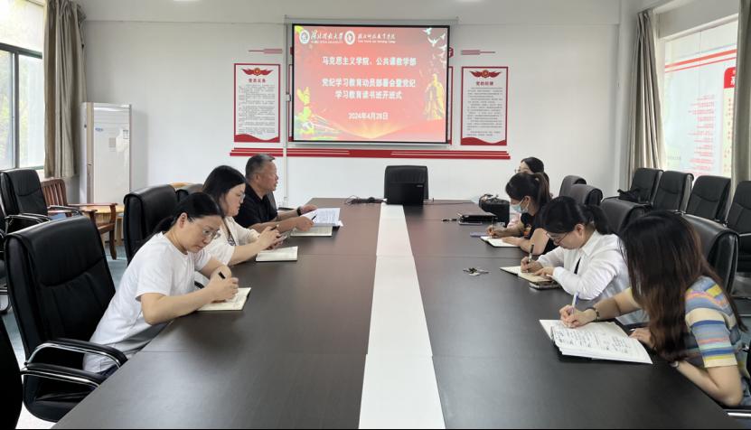 本网讯(通讯员 曾倩/文 韩希锦/图)4月28日下午,院部召开党纪学习教育动员部署会暨党纪学习教育读书班开班式,院部主要负责人胡继慧、副院长李映、党总支委员和支部书记参加会议,会议由党总支书记江文主持。