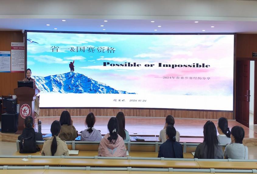 本次教研活动以“‘赛’‘教’有思,‘研’以共进”为主题,由公共课教研室副教授谢贝妮老师担当主讲人。作为2024年度湖北省教师教学能力大赛二等奖的获奖者,谢老师以“省一&国赛资格:Possible or Impossible”为主题,代表参赛团队为全体教师分享了她们的参赛经验和心得体悟。