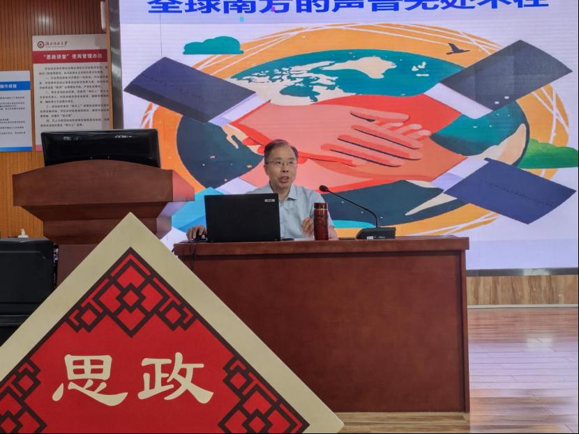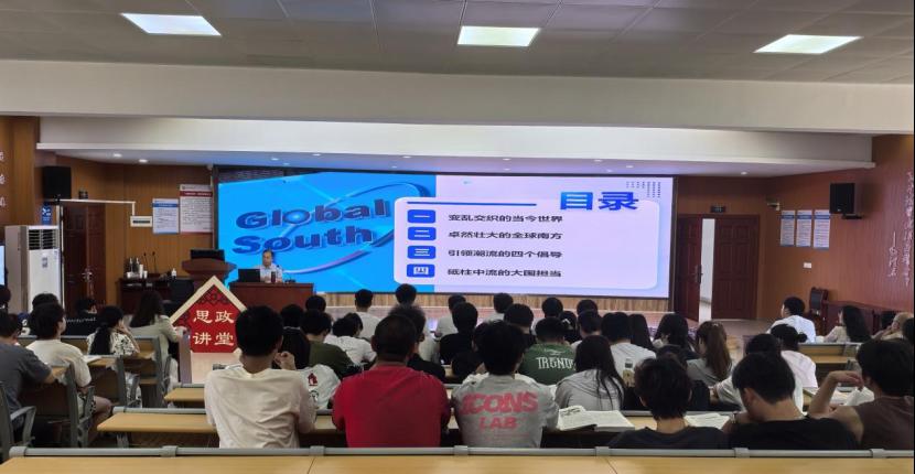 汤春来以“谱写全球南方团结合作新篇章”为主题,用生动鲜活的语言、丰富的案例、详实的数据,结合时事,从变乱交织的当今世界、卓然壮大的全球南方、引领潮流的四个倡导、砥柱中流的大国担当等四个方面,深入浅出地讲解了全球南方崛起的时代背景、重要影响,中国对全球南方发展的贡献及具体部署等。