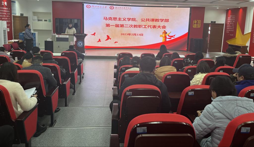 通讯员(曾倩/文 韩希锦/图)2月23日,马克思主义学院、公共课教学部召开第一届教职工代表大会第二次会议。院部领导班子成员、全体教职工代表参加了会议,会议由党总支书记姜玲主持。
