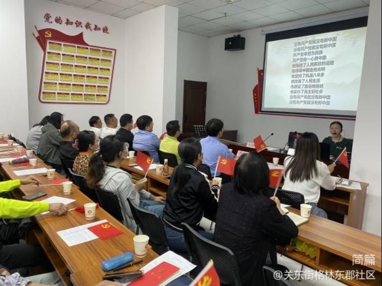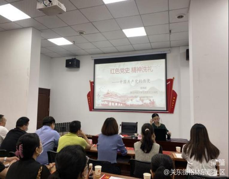 6月28日,梁燕妮同志受邀在关东街新世界社区讲党课,武汉市东湖高新区关东街道金地格林东郡小区、新世界社区丽岛漫城小区、南湖锦城社区康泰花园小区、清江社区正荣紫阙台等4个社区党员及东湖高新区党工委、区人民法院、武汉软件工程职业学院等7大联合共建单位党员参加。