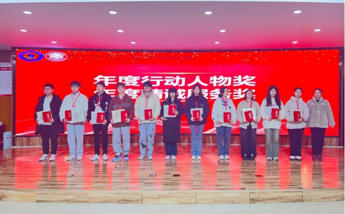 表彰会上为优秀学生颁奖,其中“进步之星”7人,“潜力之星”7人,“实践之星”6人,“年度坚实后盾奖”2人,“年度精诚服务奖”7人和“年度行动人物奖”6人。颁奖结束后,获奖学生合唱歌曲《奉献》,歌声饱含热情,表达了学员们将立足自身岗位,传承弘扬奉献精神,坚持用理想支撑奉献,用奋斗书写奉献,让奉献精神在2024年闪耀夺目光芒的决心。获奖干事们朗读了诗歌《百年芳华》,用激情昂扬的朗诵之声表达了对知行学会的热爱和对未来的期望。外联部干事表演歌曲《我们的明天》,祝福知行学会有更好的明天,将现场气氛推向高潮。