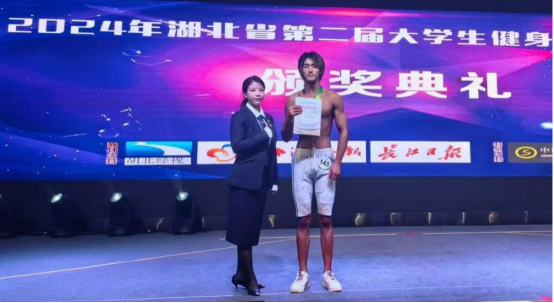本网讯(通讯员 骆艳/文 雷佳/图)11月15日至17日,2024年湖北省第二届大学生健身健美锦标赛成功举办。我校人工智能学院2024级的杨纯瑞同学代表学校参赛,并在健身健美模特C组项目中奋力斩获银牌。