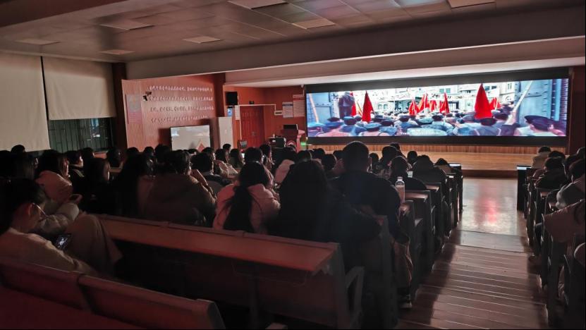 活动期间,各学院学生展现出极高的热情,积极参与其中。观看影片过程中,同学们全神贯注地凝视屏幕,被电影中的故事情节深深吸引。他们的面庞流露出庄严肃穆的神情,似乎能够真切地感受到历史的厚重与革命的艰辛。不少同学表示在此次观影活动中深受感触,要牢记革命先辈们不惧强敌、勇于牺牲的大无畏精神,更要继承和弘扬伟大的革命精神,为实现中华民族伟大复兴贡献青春力量。
