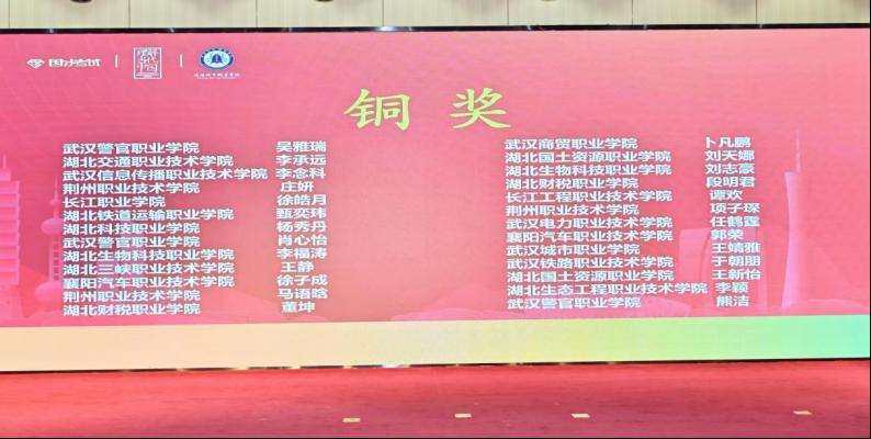 本网讯(通讯员 陈玲/文 张超 刘珍/图)11月6日至7日,“外研社· 国才杯”“理解当代中国”全国大学生外语能力大赛湖北赛区演讲比赛在武汉城市职业学院落下帷幕。来自全省45所兄弟院校的134名选手同台竞技,经过两轮激烈比拼,我校参赛选手以出色的表现斩获2金1铜:2023级电子商务4班洪巧儿同学和2022级市场营销2班陈安妮同学分别以决赛第三名和第五名的佳绩荣获金奖,2023级大数据与财务管理1班的杨秀丹同学喜获铜奖,洪巧儿同学将代表湖北省参加12月份的全国总决赛。