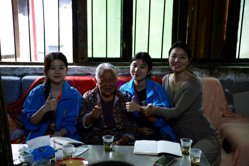 慰问期间,党员老奶奶和党员退休干部给志愿者们留下了深刻的印象。党员老奶奶是1959年,19岁时便加入了中国共产党,是因为觉得只有跟党走,才能过上好日子,只有带头做好表率作用,村民的生活才能越过越好。和志愿者们的谈话中,老奶奶至少七次提到了“以习近平同志为核心的党中央”,她说到党在新时代所做的的扶贫工作以及现在的乡村振兴工作中,为老百姓做的实事,以及给农村带来的巨大变化时,不断感叹“有党真好,我们真幸福”。在提到老人家当年所处时代和新时代党为群众做实事的态度时,老奶奶频频点头,不断重复着“没变,没变,从未改变”,这让志愿者们深深感受到了共产党人的初心,一百年来至始至终,只为群众做实事、谋幸福。当问到“如果给五二村党员干部和驻村队伍的工作打分,满分是十分的话,您会给几分。”奶奶竖起大拇指,不带任何犹豫的脱口而出“十分!”,两个铿锵有力的字眼让我们看到了老党员热切的的感党爱党之心。